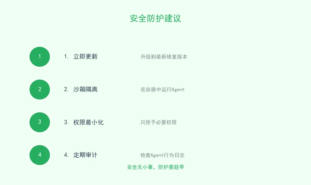 在使用Agent时,尽量避免让它访问敏感文件和执行高风险操作。