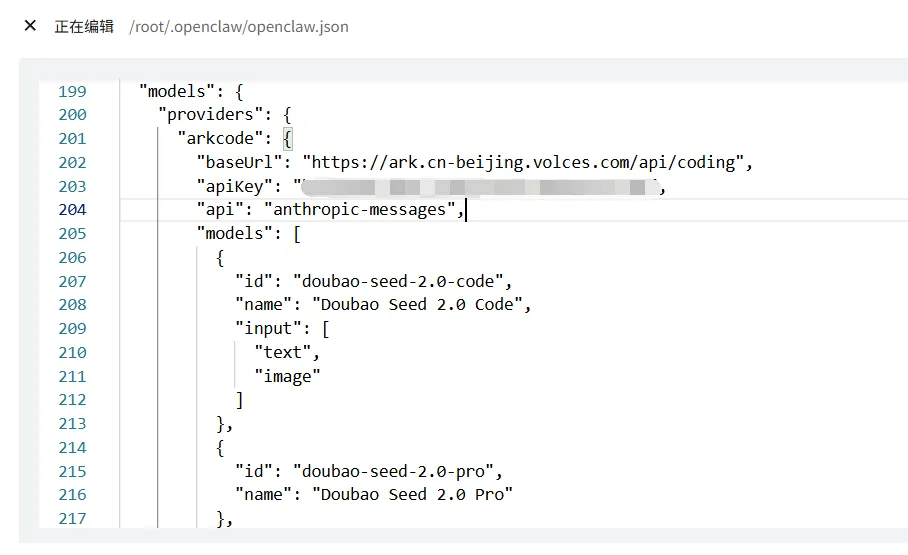 如果你换了服务商、或者API Key过期了,可以直接改这个文件。但也可以改openclaw.json里的models模块,效果一样。