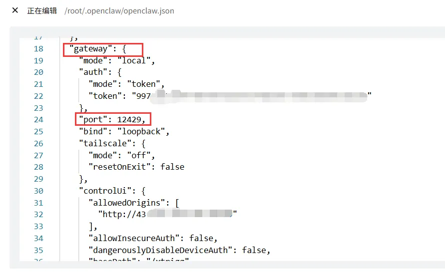 port是端口号,默认18789。如果你的服务器上这个端口被占了,就在这改。