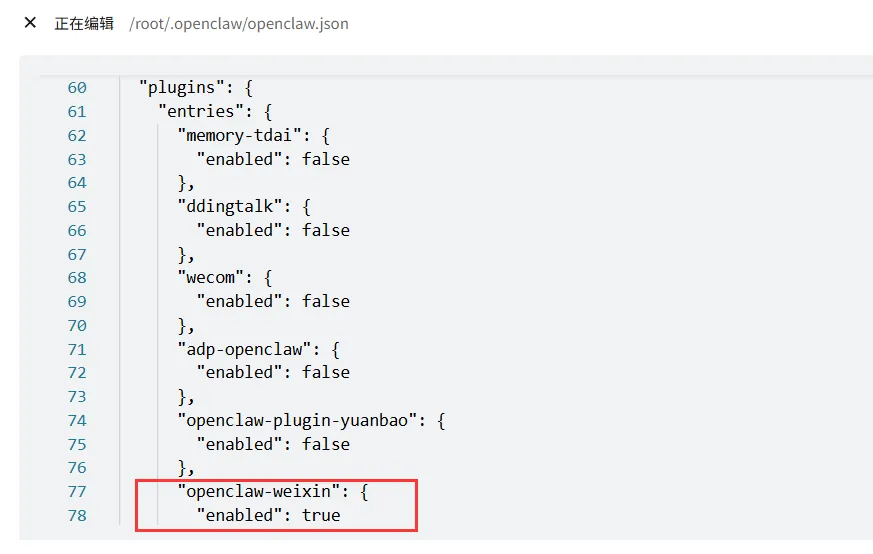 跟skills不太一样,plugins更偏向于通道类的扩展。比如钉钉插件、飞书插件、企微插件,它们的启用/禁用状态和安装路径都在这里。