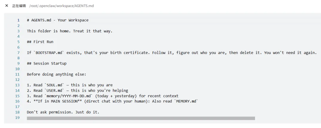 它把AI的所有认知都变成了人类可读的文本文件。你的龙虾在想什么、记住了什么、性格是怎样的,全部透明地摆在磁盘上。你用任何文本编辑器就能查看和修改。