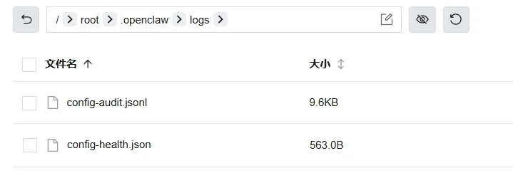 config-audit.jsonl这个很多人不知道,但超级有用。它记录了每次openclaw.json被修改的历史——谁改的、什么时候改的、改了什么。如果你改了配置之后龙虾出问题了,看这个文件就能精确定位是哪次改动搞的鬼。