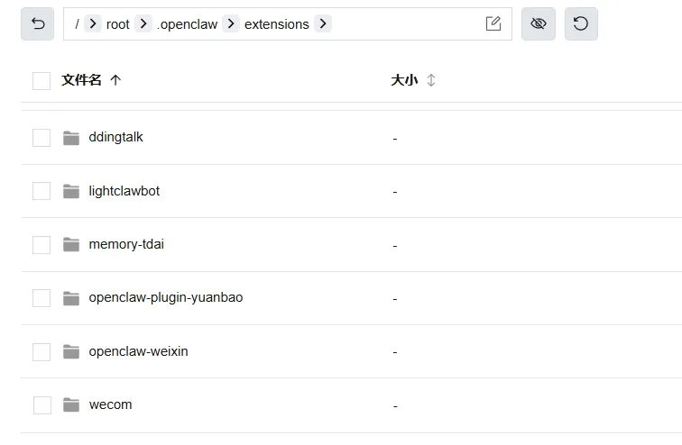 如果某个插件出了问题,你可以直接进到对应的文件夹检查配置。不过一般来说,插件的核心配置还是在openclaw.json的plugins模块里管理的。