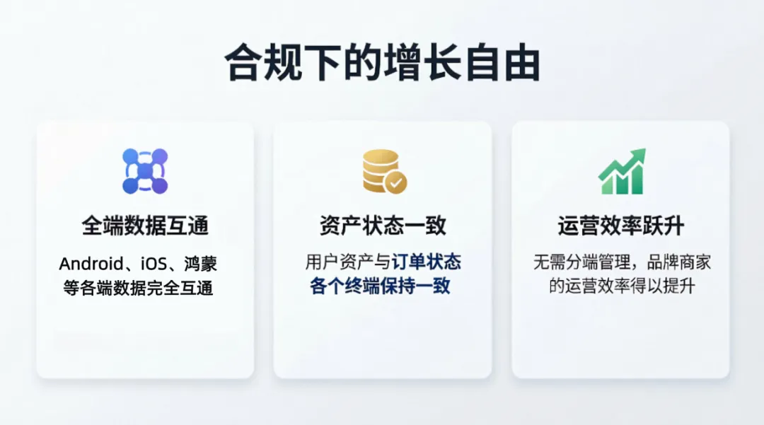 本次接入虚拟支付的核心价值在于“合规下的增长自由”:Android、iOS、鸿蒙等各端数据完全互通。用户资产与订单状态各个终端保持一致,无需分端管理,品牌商家的运营效率得以提升。