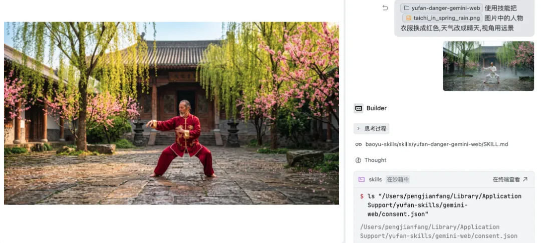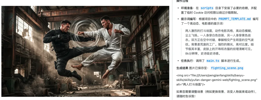 • 打开OpenClaw → 调用yufan-gemini-web → 输入想法 → 10秒出图 • 不满意?再调一句Prompt重来 • 要改细节?直接"这张图把背景换成赛博朋克风格"