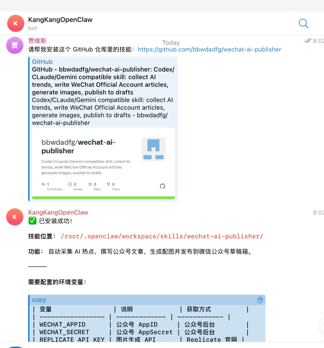 有了告诉我,我帮你配好,然后就可以开始自动发布公众号文章啦!📝