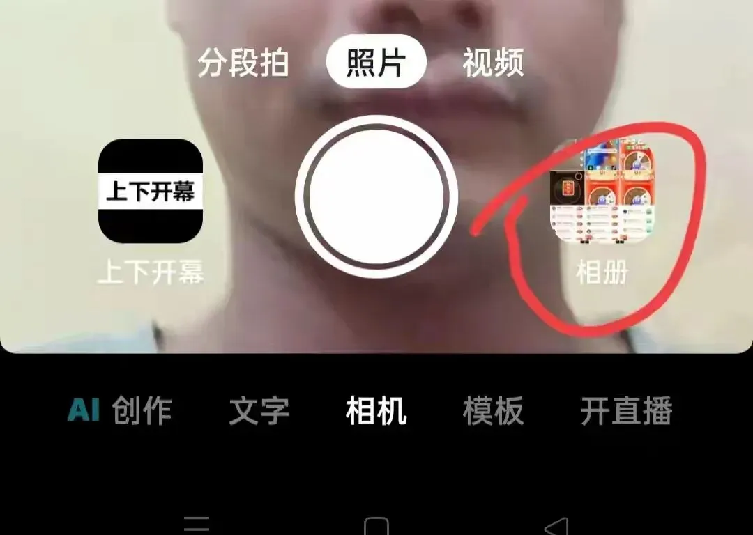 在此页面,你可以选择从手机相册上传视频,或者直接拍摄一张照片或录制一个视频