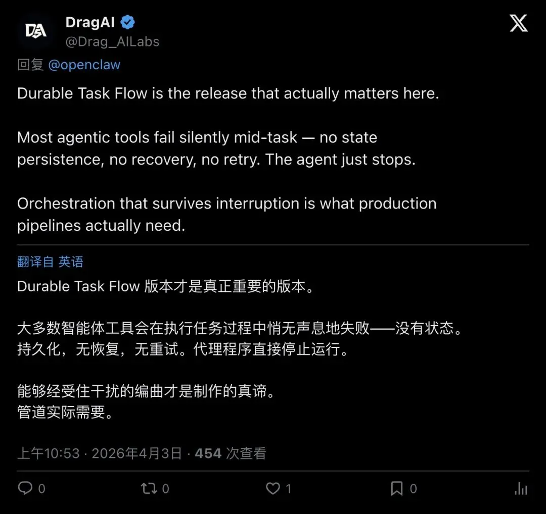 ▲ DragAI Labs:真正重要的是 Durable Task Flow——能扛住中断的编排,才是生产流水线需要的东西。