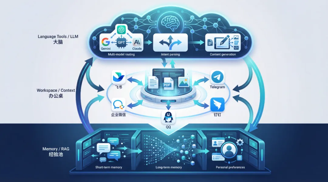 长期记忆(知识库): 通过向量数据库(RAG 技术),它可以记住你的写作风格、常用指令、甚至是特定的业务背景知识。
