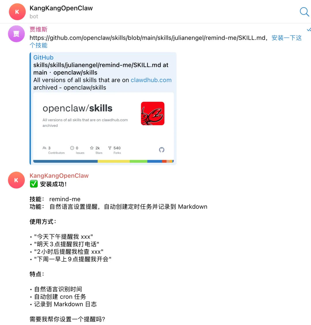 顺便分享两个todo-tracker待办事项追踪,和remind-me自然语言设置提醒的Skill: