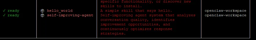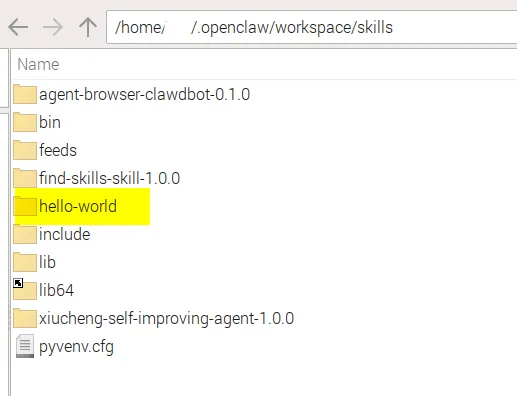 1、创建技能目录:在workspace/skills里面创建技能目录如"hello-world"