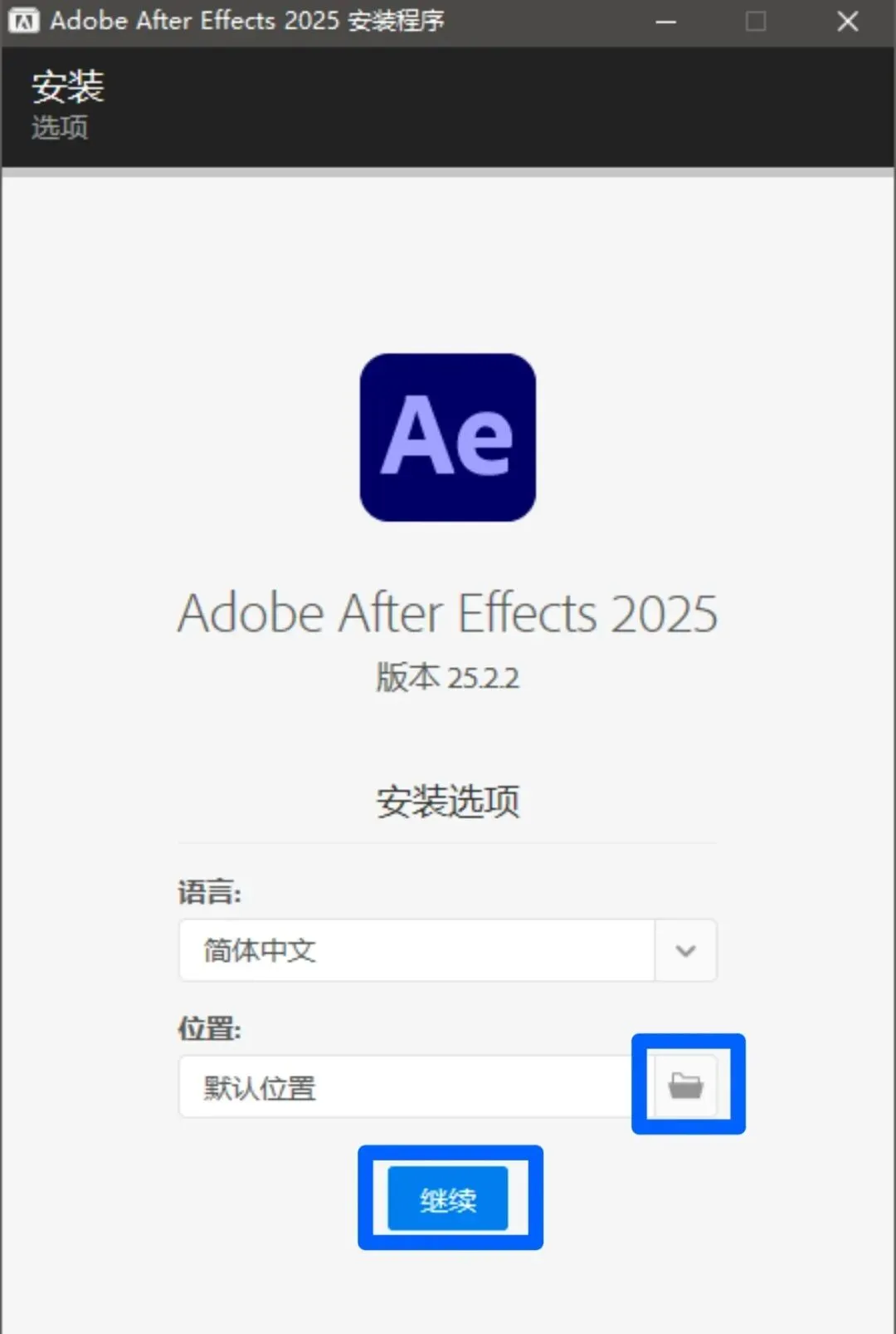 下面的安装教程示范用的软件是Ae2025,其余版本安装方法跟这个通用!