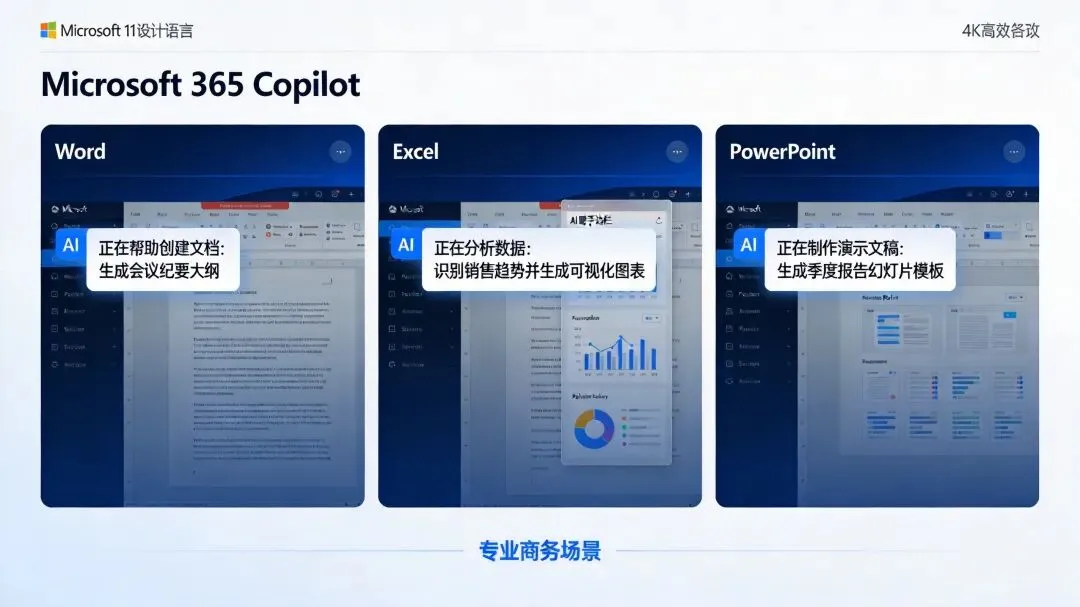 Microsoft 365 Copilot:深度集成在Word、Excel、PowerPoint中的AI智能助手