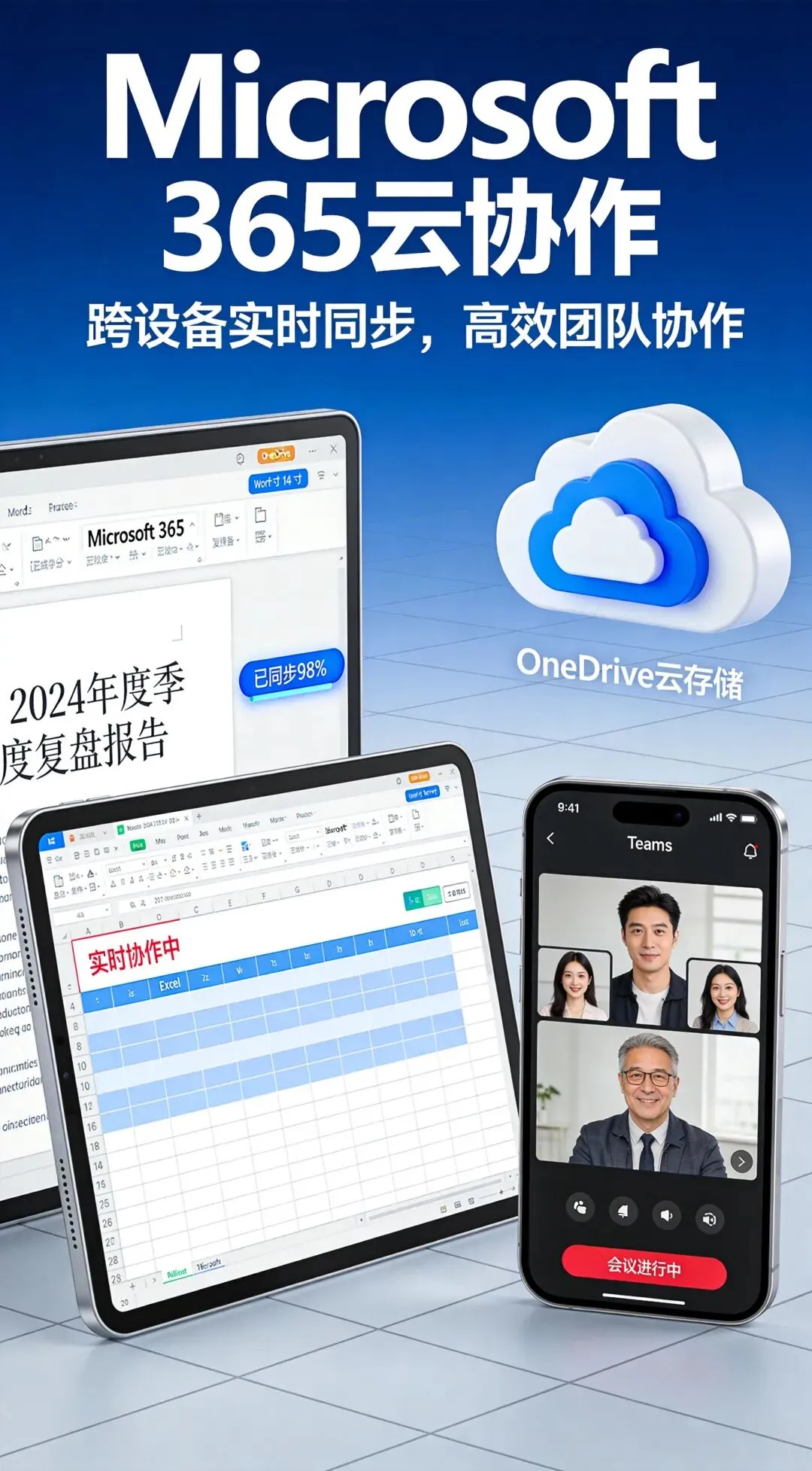 Microsoft 365云协作生态:PC、平板、手机多设备无缝同步,团队实时协作编辑