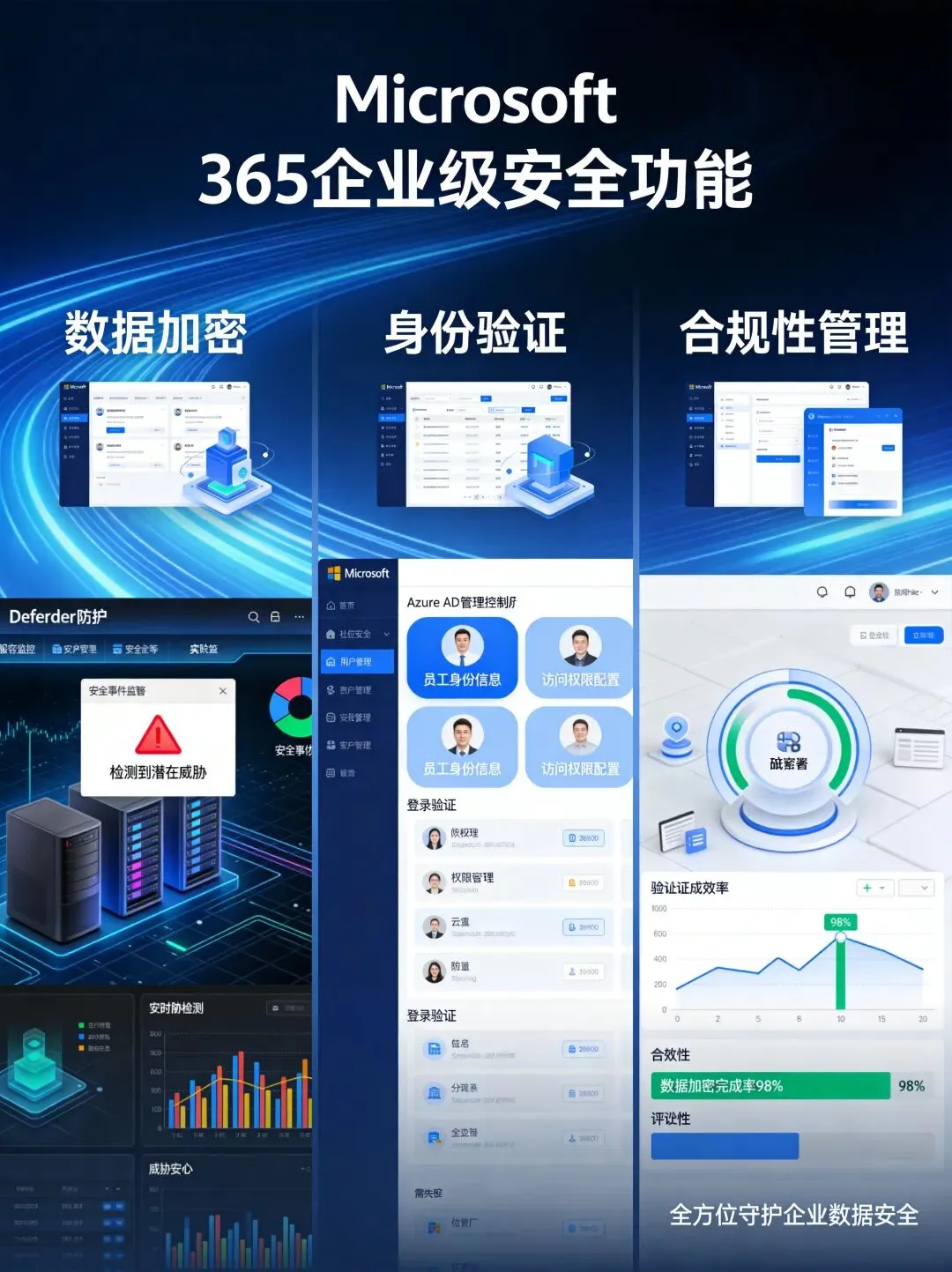 Microsoft 365企业级安全:AES-256加密、Defender防护、合规性管理全方位保护