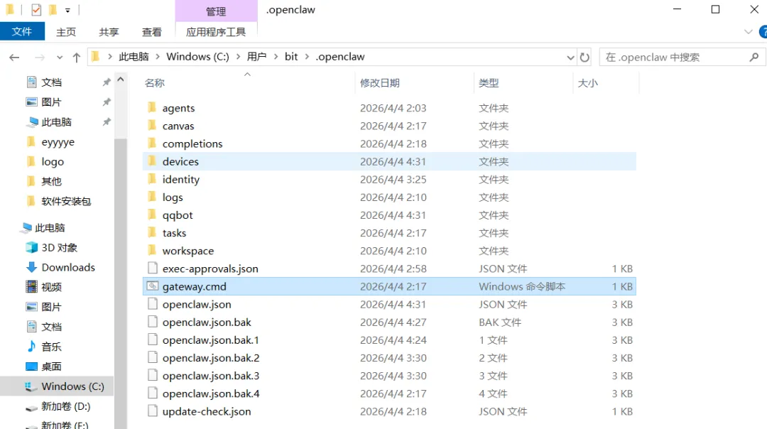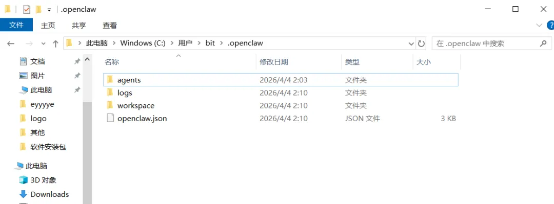 同时提示我们已经在用户目录下创建了.openclaw文件夹存放配置文件openclaw.json与工作区,我们可以看一下: