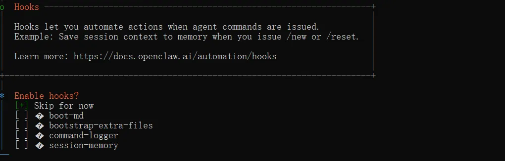 是否启用自定义命令,跳过(注意这里需要先按空格选中后再回车执行选择):