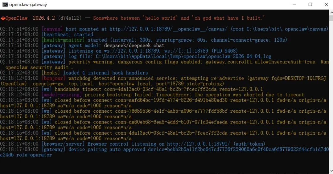 这里回车后基本配置就完成了,OpenClaw会自动打开新窗口启动gateway网关: