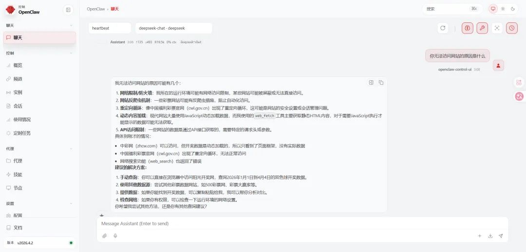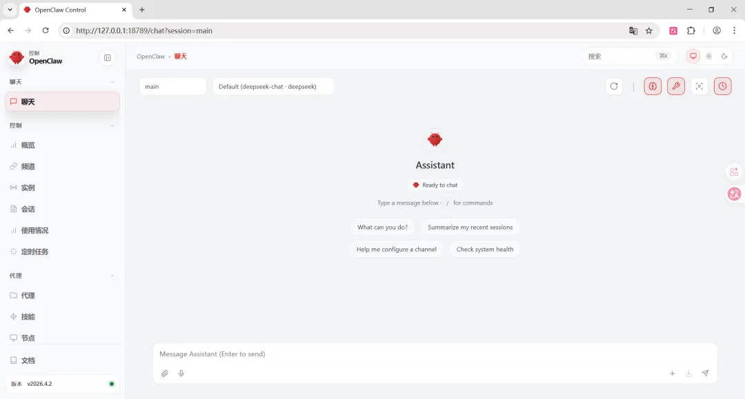 这时候我们就可以通过浏览器访问http://127.0.0.1:18789/进入web页面了: