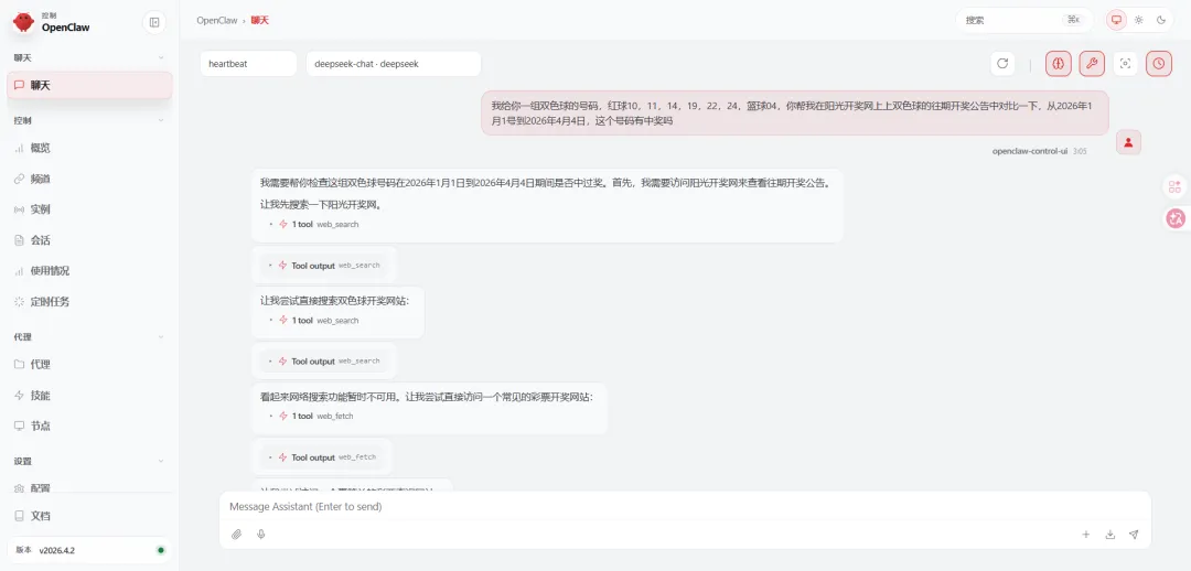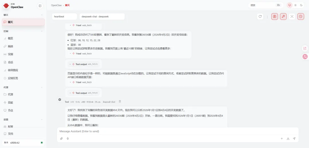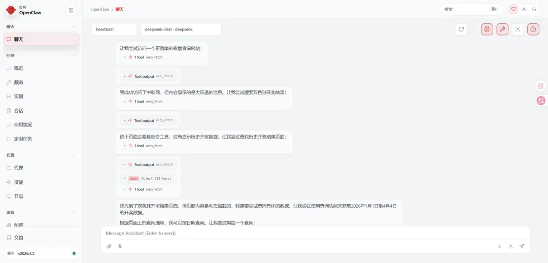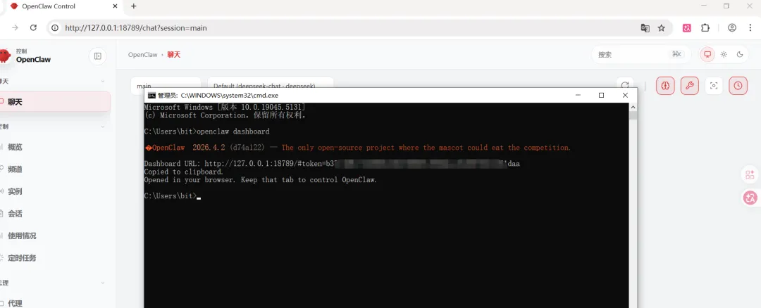 如果窗口不小心关掉也没关系,可以通过在dos窗口输入openclaw dashboard命令打开web页面: