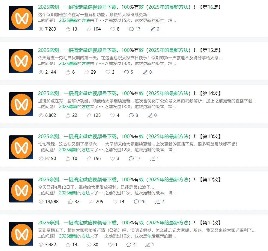 更让人头疼的是,市面上虽然有不少下载工具,但大多数更新慢,根本跟不上微信视频号的变化。刚找到一个能用的,不久就失效了,这种反复折腾,真的是让人又心累又抓狂。