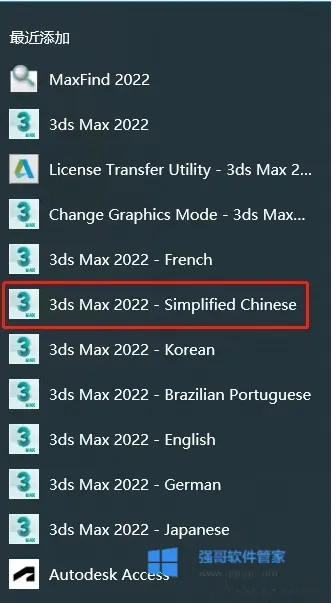 12.安装后有多种语言点击开始-所有程序-Autodesk-3ds Max 2022 - Simplified Chinese。
