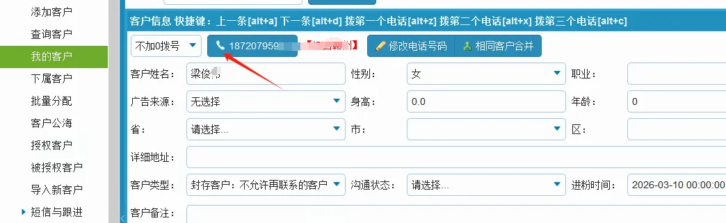 场景1:CRM内一键拨号,不用手动输号码(最常用)