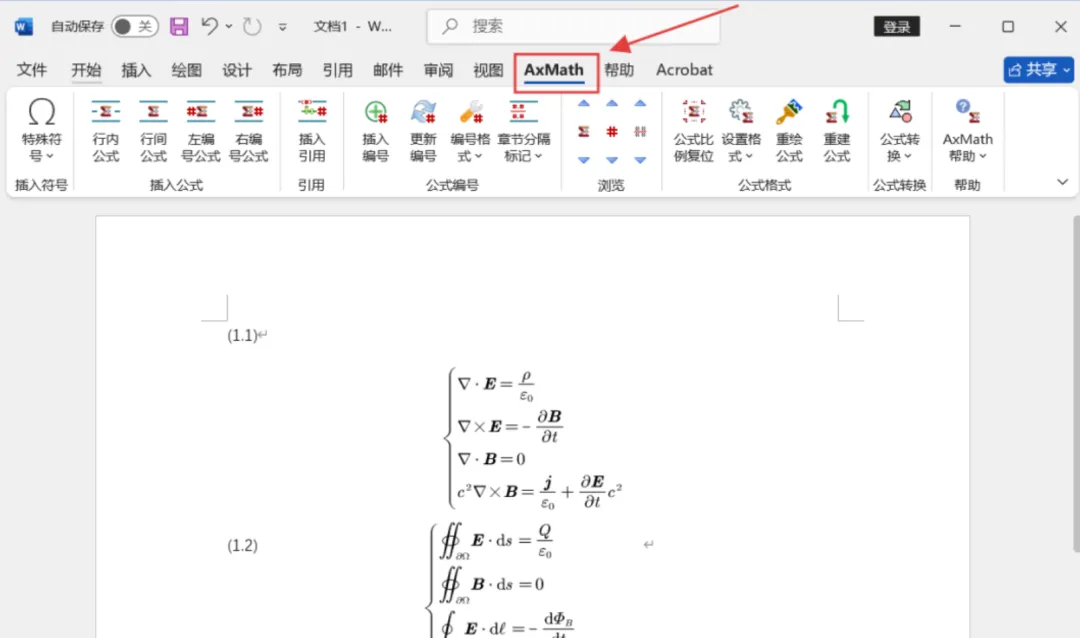 独立程序:运行 AxMath.exe,功能完整,适合编辑复杂、独立的公式,可保存为 .axm格式或导出为图片、LaTeX 代码。Word/WPS 插件(最常用):安装后,Word/WPS 工具栏会出现“AxMath”选项卡。点击“插入公式”按钮,即可在文档光标处启动 AxMath 编辑窗口,公式将作为可编辑对象嵌入文档。