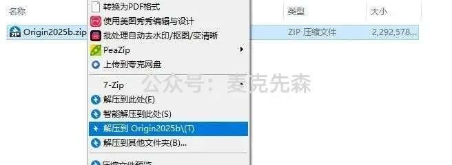 1.打开下载好的文件夹,找到压缩包,鼠标右键选择【解压到Origin2025b\】。