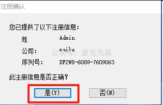 7,填写授权信息:①公司名称【maike】②输入序列号【DF2W8-6089-7609063】③点击【下一步】。