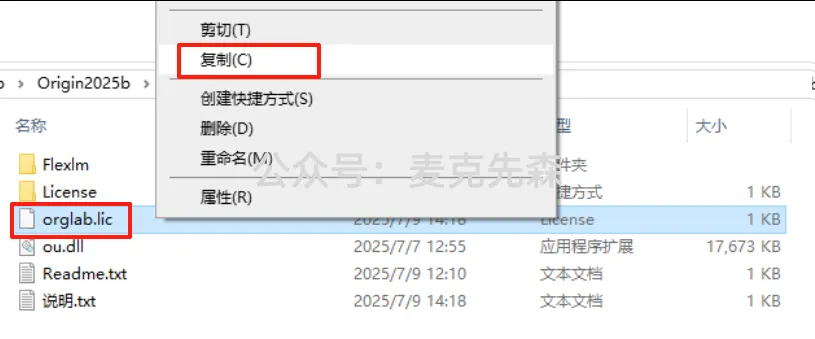 19,打开解压好的【Crack】文件夹,找到【orglab.lic】文件,鼠标右键选择【复制】。