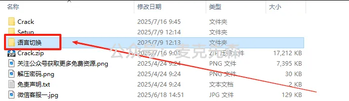 27,打开一开始解压好的文件夹【Origin2025b】,找到【语言切换】文件夹,双击打开。