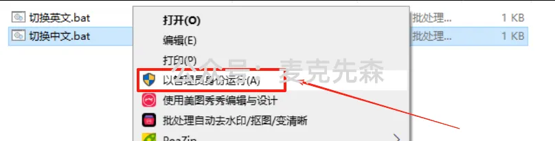 28,找到【切换中文.bat】文件,鼠标右键选择【以管理员身份运行】(运行完成后自动关闭)。