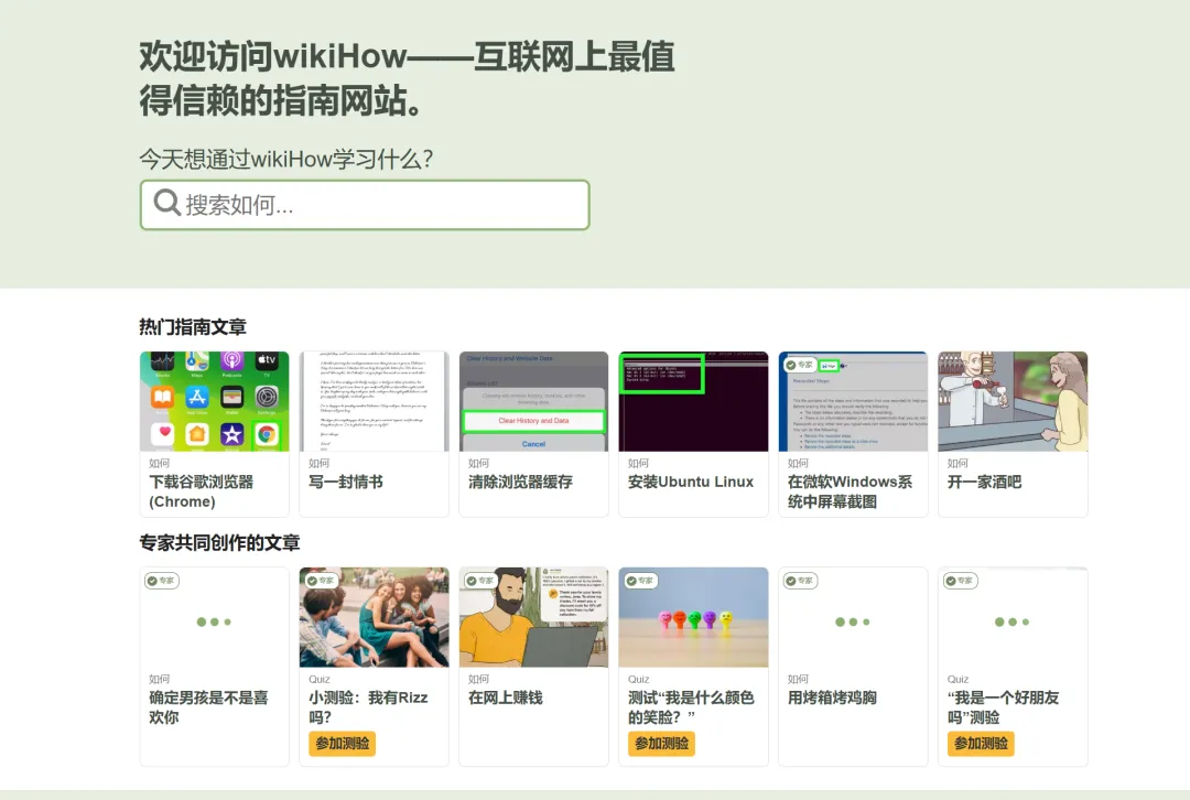 WikiHow 是一个基于Wiki 的社区,它主要教你怎么做,它也同时支持CC 协议它作为eHow 的补充,它上面也有很多新奇的内容,比较教你如何释放压力,如何锻炼身体,减肥等等你还可以使用RSS 来订阅,而且没有广告当然你也可以参与其中,选择翻译或者原创它支持几十种语言,上面当然也有大量的中文资源