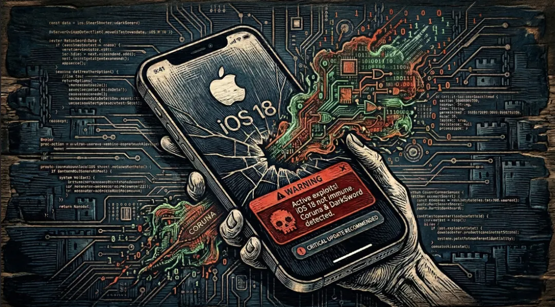 各位安全圈和开发界的兄弟们,最近苹果搞了个罕见的“大动作”,不知道大家有没有关注到。如果你手里还有没升级系统的旧iPhone或iPad,这几天可能已经收到了苹果直接糊脸的锁屏弹窗警告。这不是一般的系统更新提示,而是意味着你的设备正暴露在活跃的Web端漏洞利用攻击之下。今天咱们就来硬核拆解一下,这次把苹果逼急了的 Coruna 和 DarkSword 到底是什么来头。