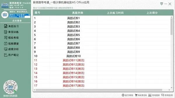 新思路等考通一级计算机基础及ms office,一款严格按照《全国计算机等级考试一级ms office考试大纲》打造的无纸化模拟考试软件。它内置50套固定题目,评分功能强大,支持模拟考试、日常练习、视频课堂、练习笔记等操作。多练几遍,就能体验和真实考试几乎一样的做题过程,掌握全面考点,轻松通关一级考试。