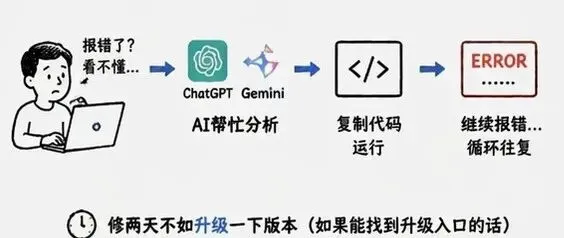 我也不懂到底发生了什么,就让ChatGPT和gemini帮着我修。