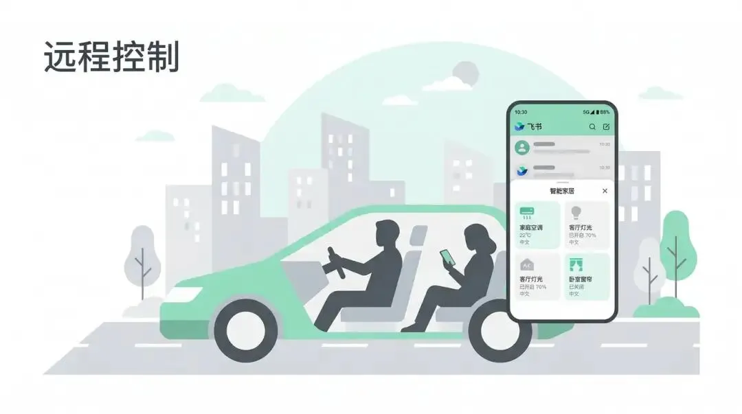 9、下班路上提前给飞书里的 AI 发⌈帮我把家里空调打开到 24 度,热水器也烧上⌋,等你回到家,屋子已经凉快了,热水也好了。