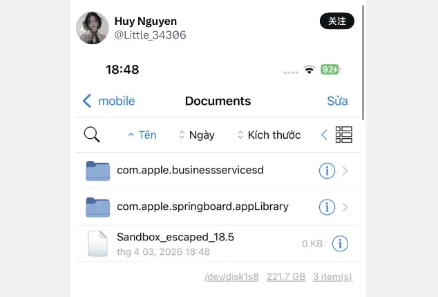 不少人好奇,功能强大的 DarkSword 漏洞能否支持 Filza 文件管理器?已有大神实测验证,答案是肯定的。