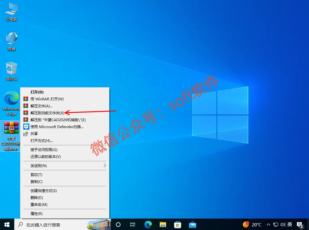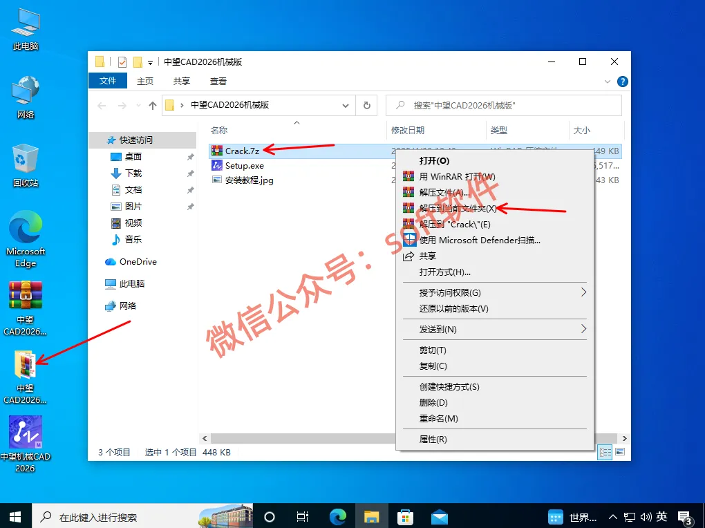 1,右键解压安装包至当前文件夹(注意,解压之前先关闭杀毒软件和window安全中心。)