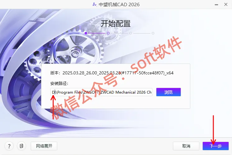 3,更改安装位置,建议直接将安装路径首字母C改成D或者EF等别的磁盘盘符,然后点下一步