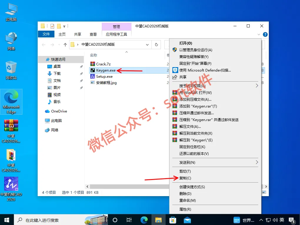 9,鼠标右键解压生成的Keygen程序,选择复制