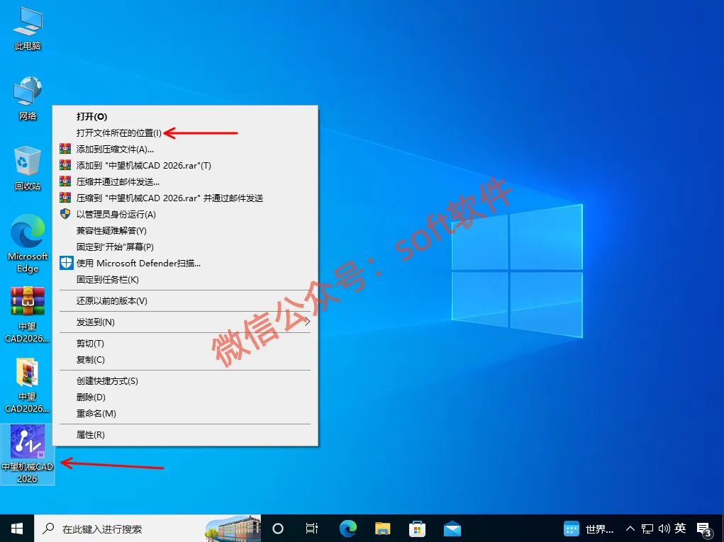 10,回到桌面,鼠标右键中望机械CAD2026图标,选择打开文件所在的位置