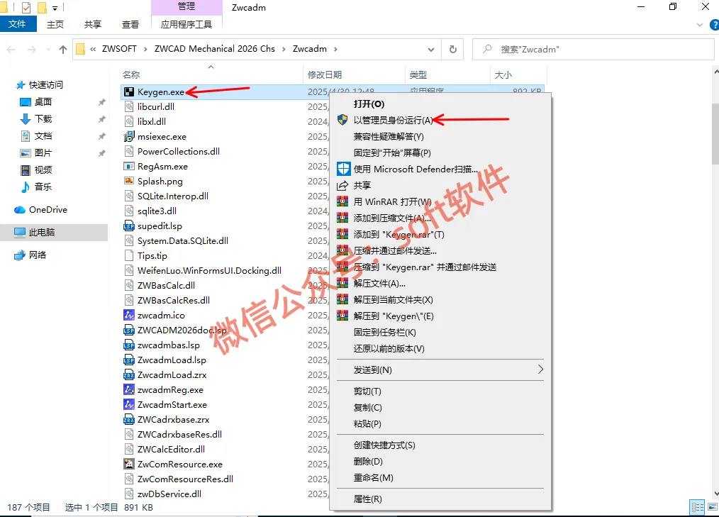 12,鼠标右键粘贴的Keygen程序,选择以管理员身份运行