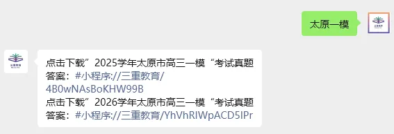 私信公众号发送 “太原一模” 即可下载领取完整版(打印)《2026太原市一模真题+答案》