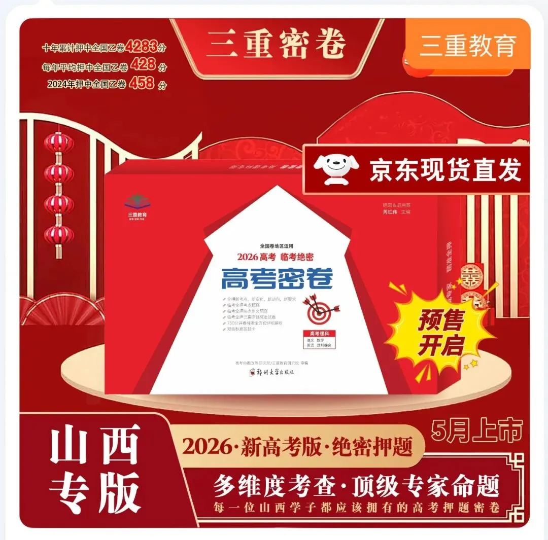 三重教育专为山西考生量身打造的《山西专版高考押题密卷》将是助力你走向成功的法宝!