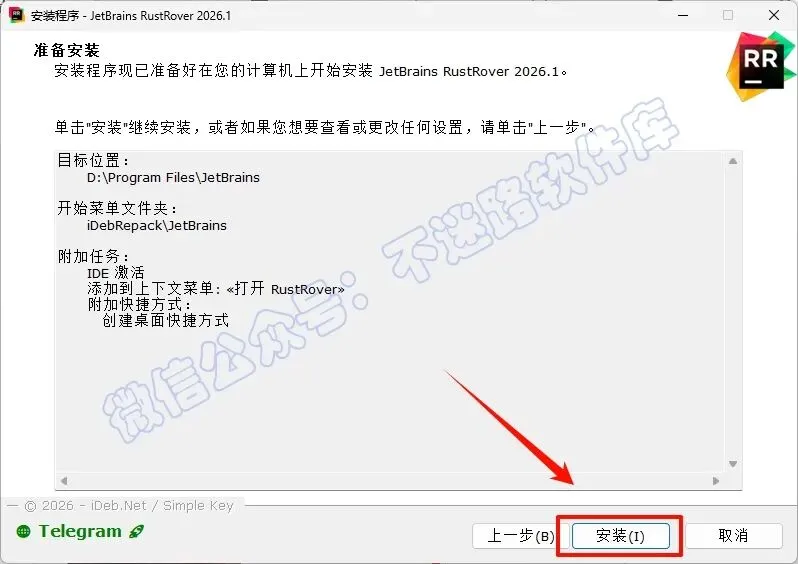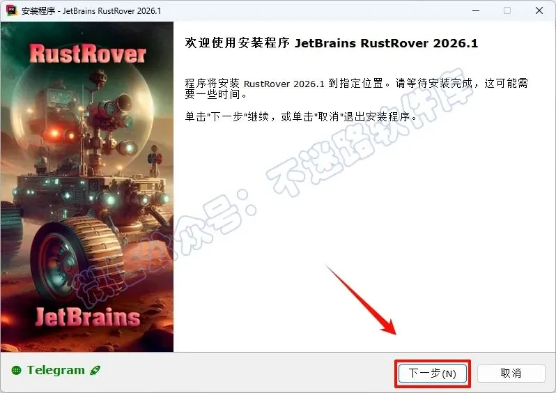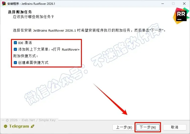 2.打开刚刚解压的文件夹,鼠标右键点击“RustRover_2026.1_x64-(IDE`a).exe”选择“以管理员身份运行”