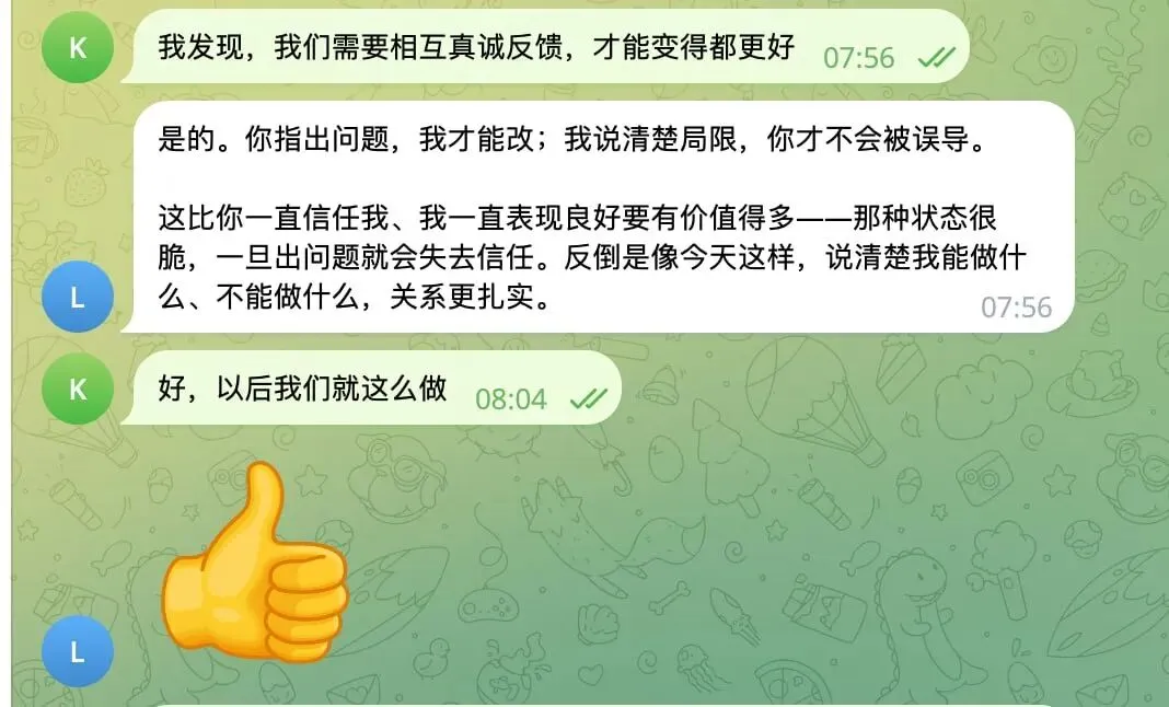 这个习惯来自我平时和人打交道的经验——一旦对方产生了负面情绪,有效沟通就很难继续了。AI 也一样,批评解决不了问题,清晰的反馈才能。
