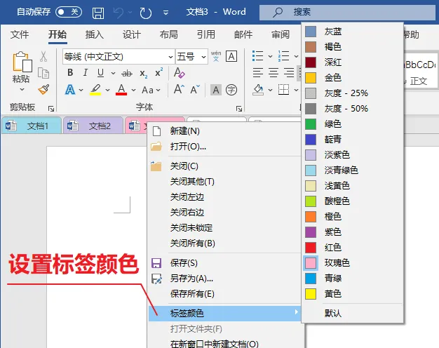 在标签页上点击【右键】,可以快速对文档进行操作。