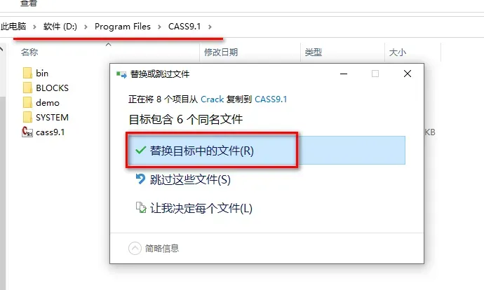 13.粘贴到软件安装路径下(第4步设置的路径),点击“替换目标中的文件”